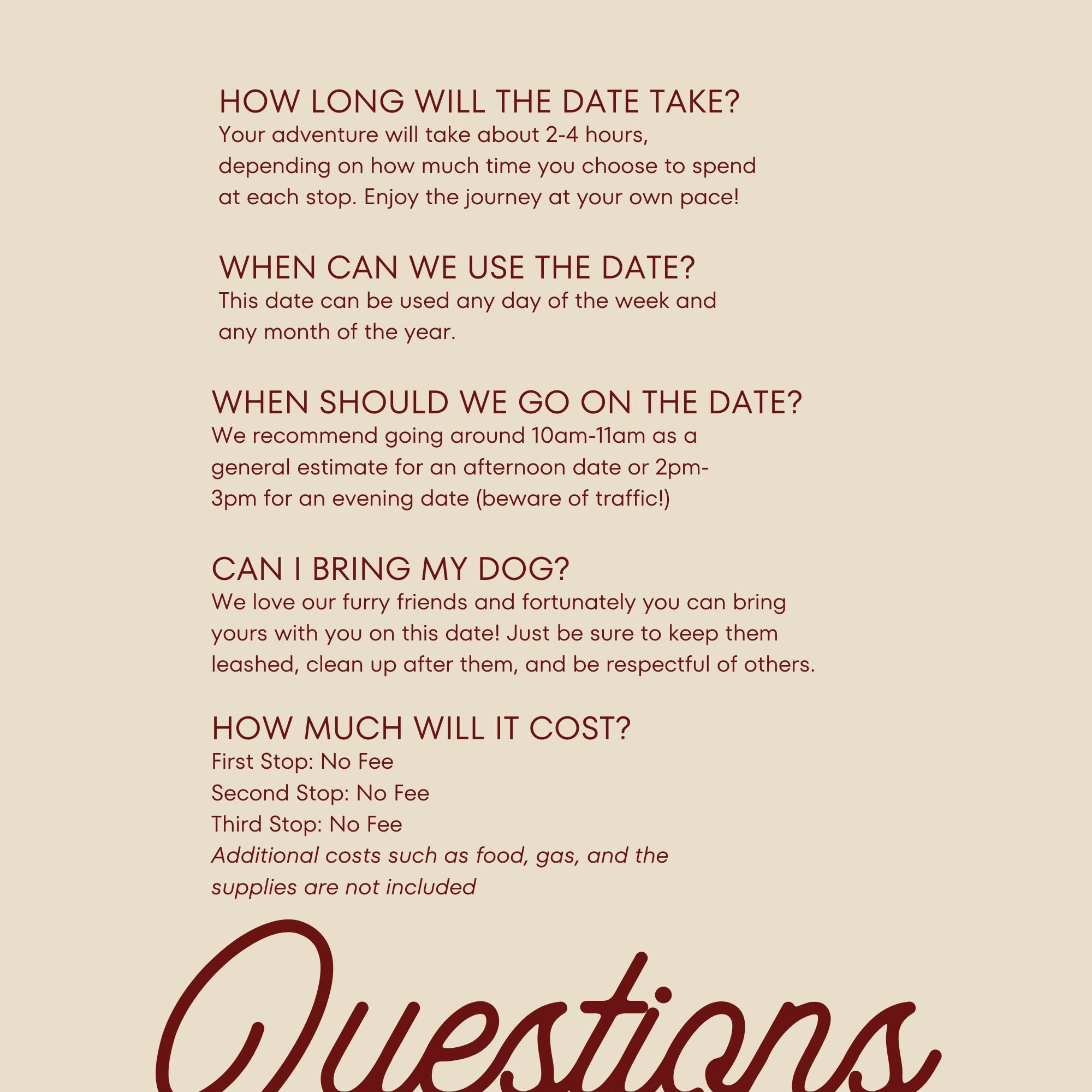 Your physical package includes an information booklet with tips and 3 separate booklets, each detailing a unique stop on your unforgettable mystery date.